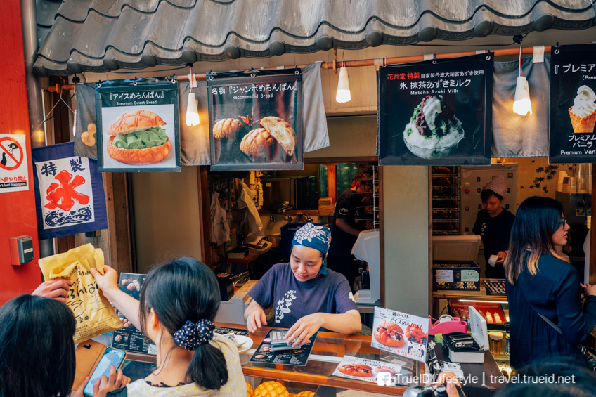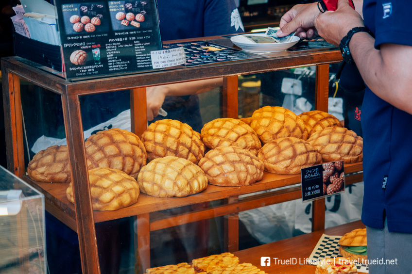 เดินทะลุผ่านวัดมาที่ด้านข้างของตัววัด เราจะเจอทางเดินไปยังย่านการค้าอีกแห่ง ซึ่งจุดนี้มีไฮไลท์ตรง เมล่อนปัง ค่ะ ของอร่อยที่พลาดไม่ได้หากมาถึงวัดอาซากุสะ แน่นอนว่า มีรสชาติต่างๆ ให้เลือกอร่อย แถวยาวมากๆ ทีเดียว อบเสร็จใหม่ๆ อร่อยสุดๆ แป้งนุ่มนิ่มมากๆ ใครมาถึงที่นี่ต้องมาแวะชิมให้ได้นะจ๊ะ !